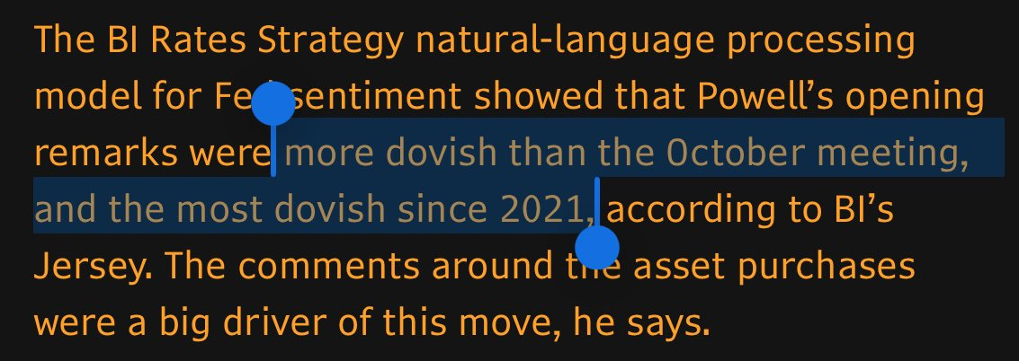 According to Bloomberg’s language and sentiment model, this was actually the most dovish Fed meeting in almost 5 years.
