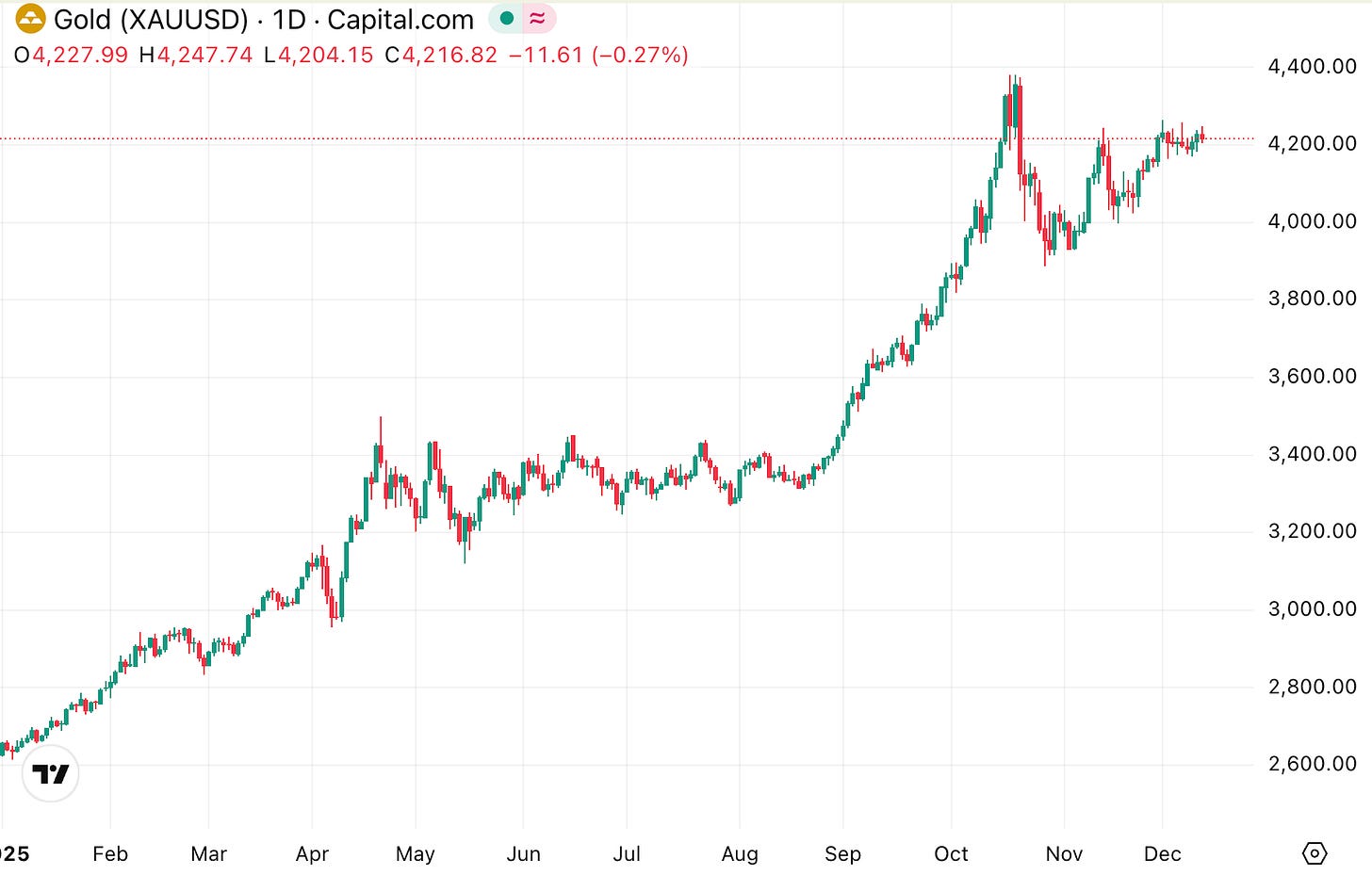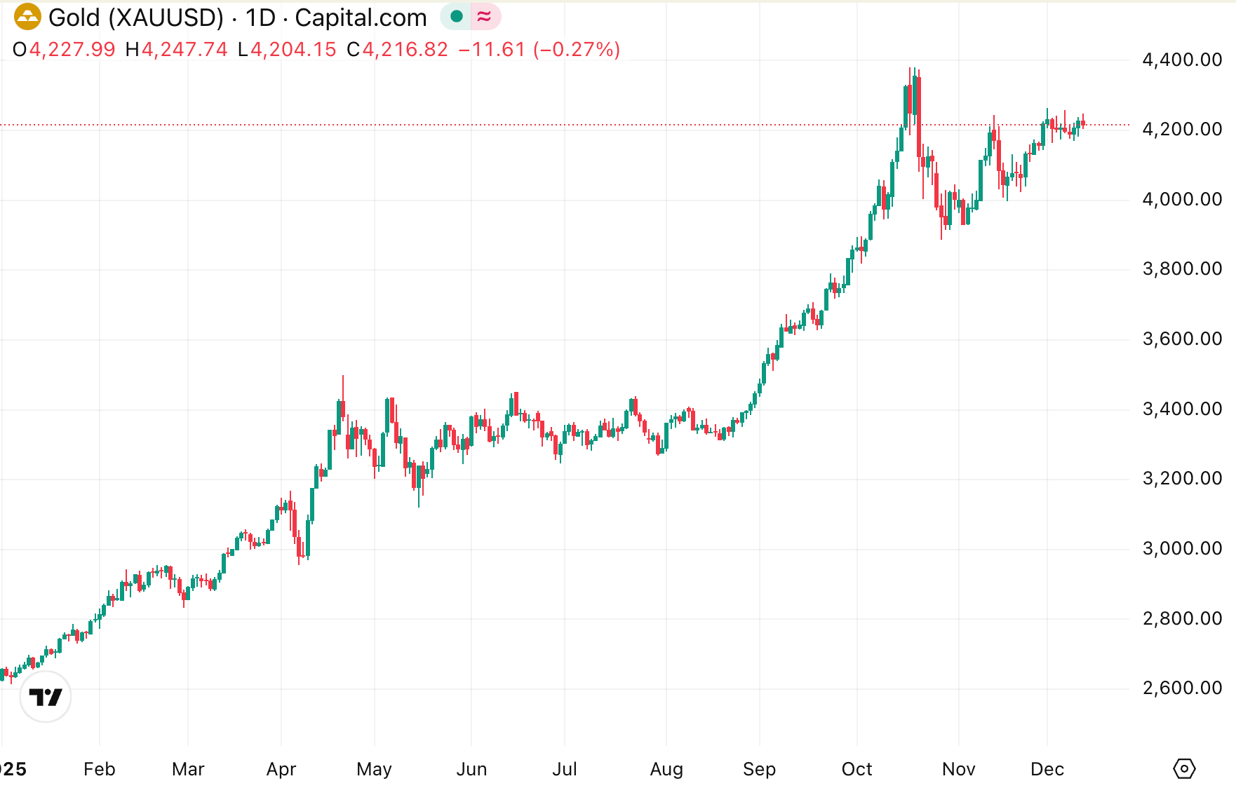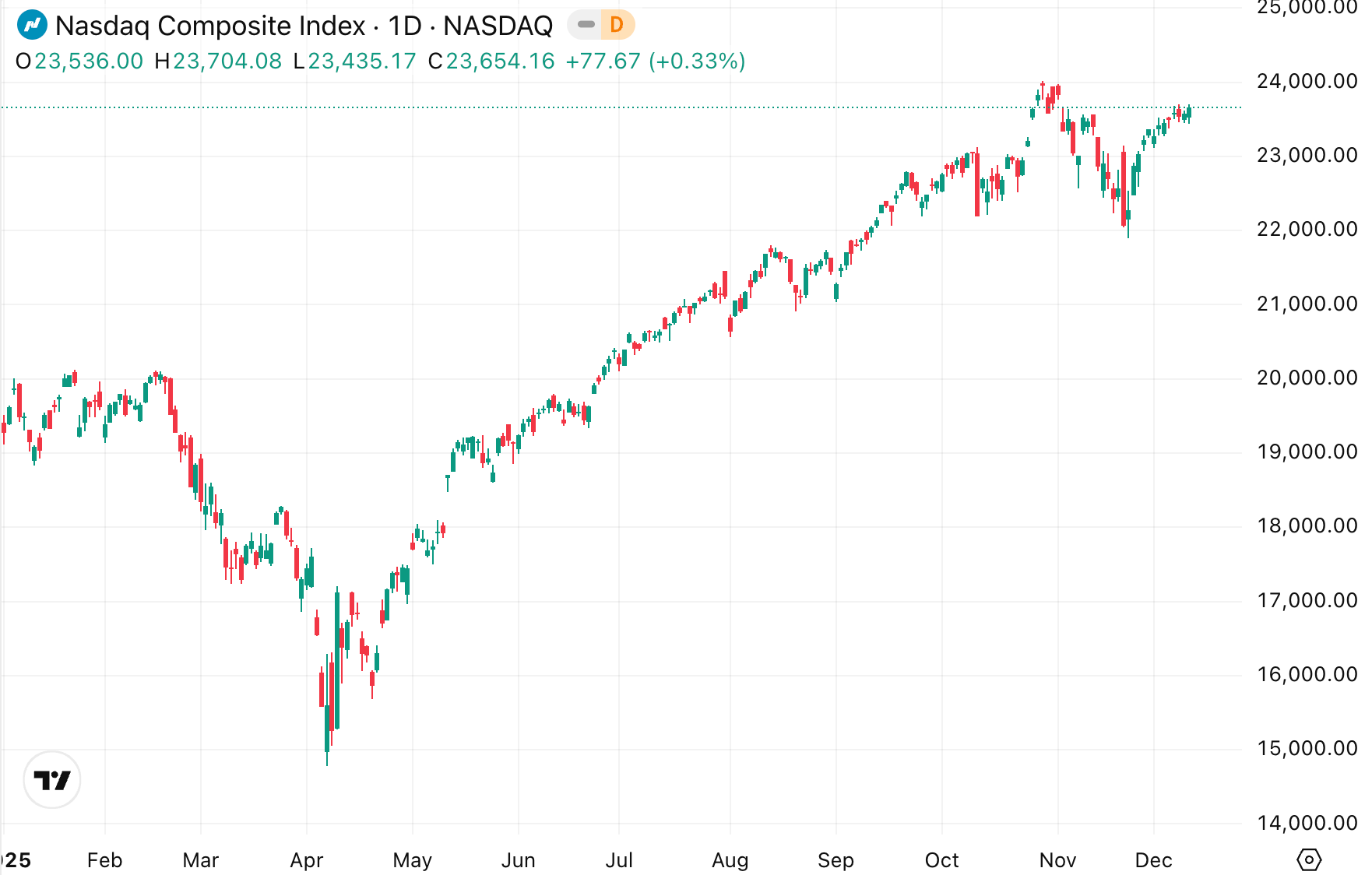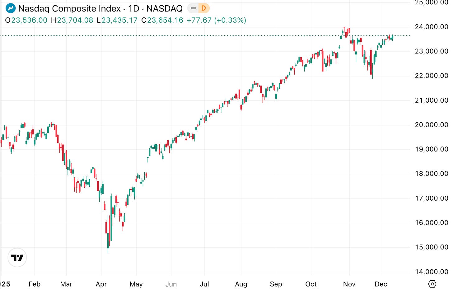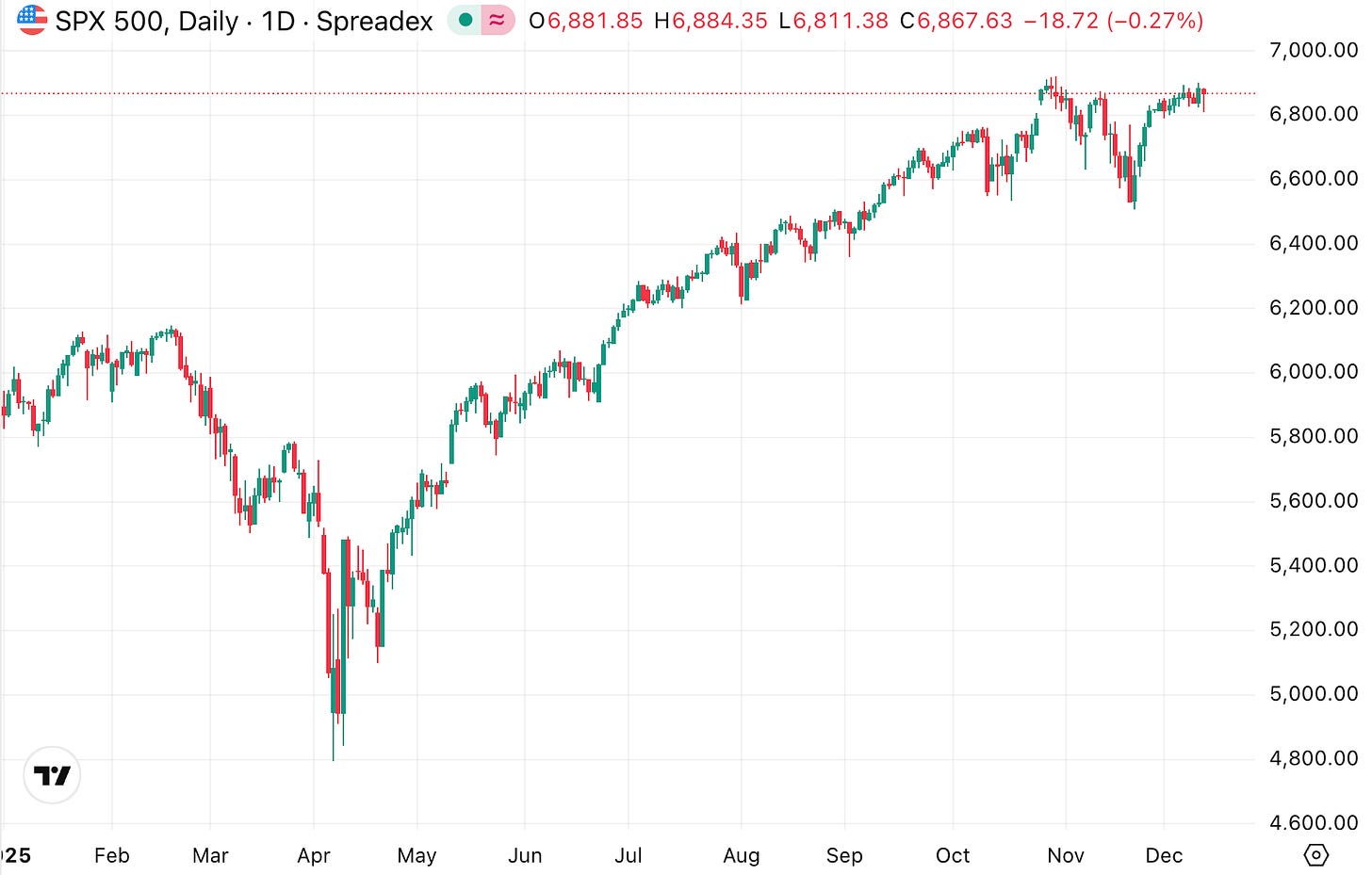 Overall it’s been another great year for the indices, even after the -19% drawdown and tariff tantrum in April. Being fully invested and buying the dip was rewarded, bigly. Big tech and the popular AI names have crushed it, while hard assets like Gold and commodities had incredible performance as the debasement trade. Of course, our wonderful Emerging Markets (LatAm) had a monster year, with Brazil EWZ 0.00%↑ up +45% YTD, blowing the S&P 500 out of the water.
