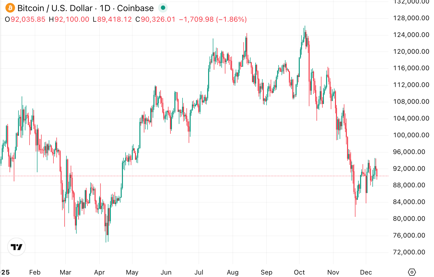 BITCOIN is hovering around $90,000 and down -5% YTD: