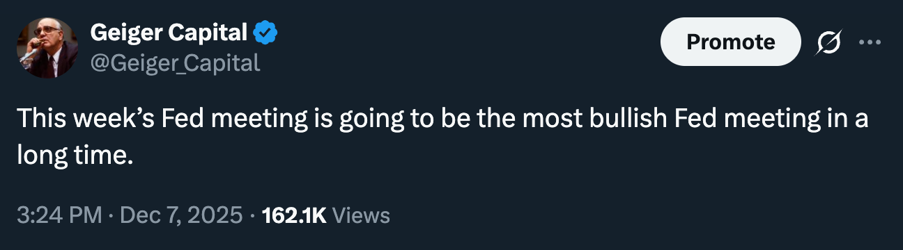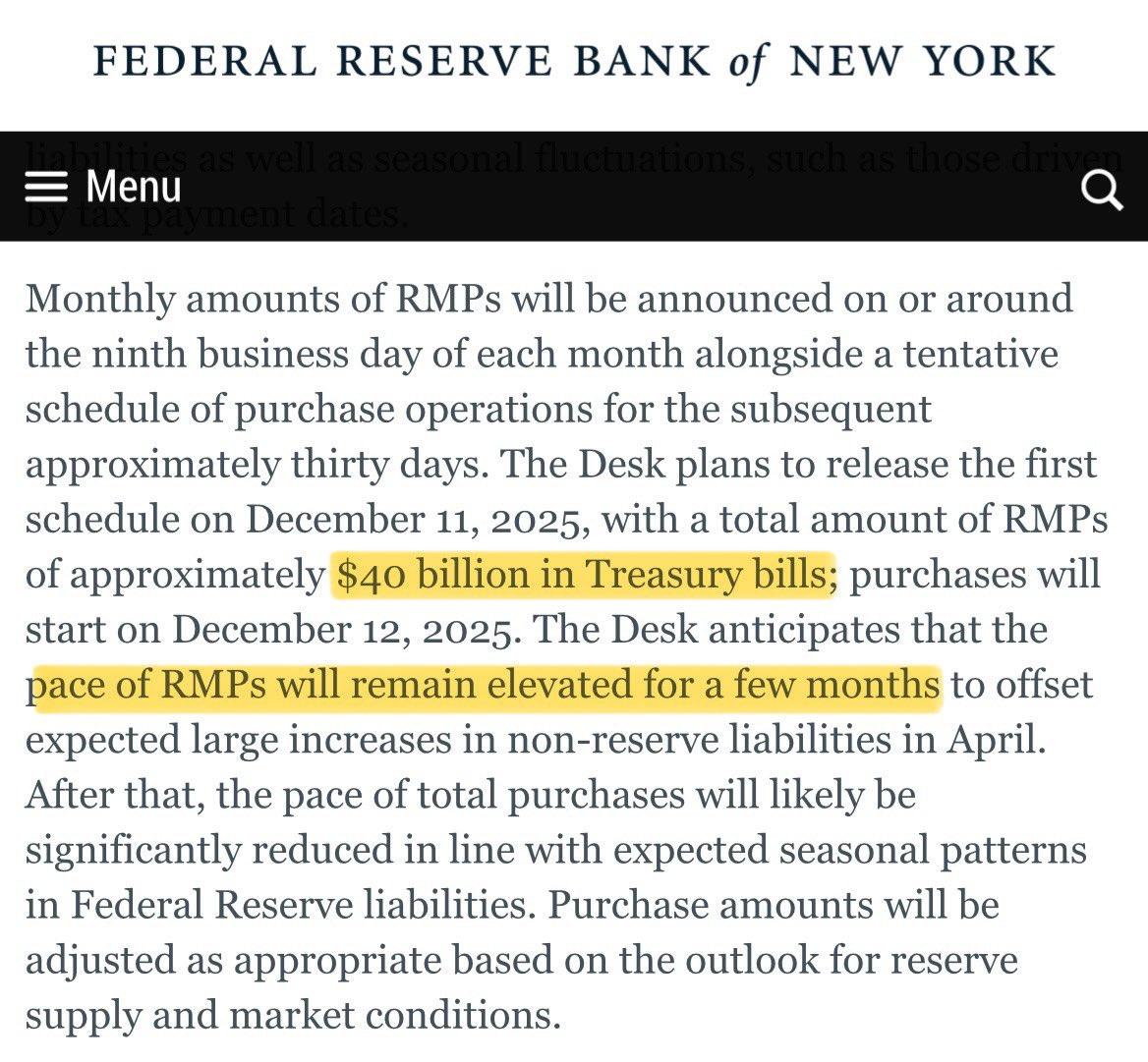The last Fed meeting of 2025 was an exciting one. I wanted to do a quick overview of what yesterday’s ‘Not-QE QE’ announcement meant, where things currently stand and look at how markets have historically performed in the last few weeks of the year. Let’s dive in…