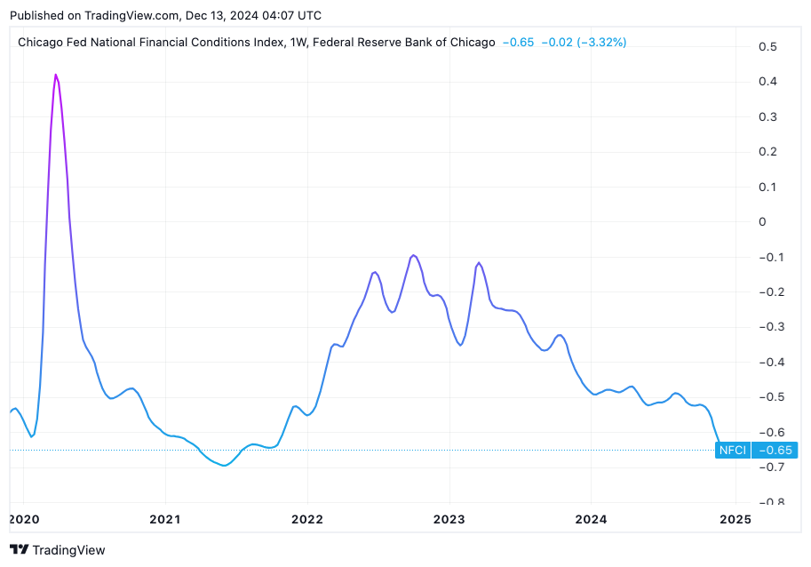 One big indicator you should definitely keep an eye on as we close out the year is the Chicago Fed Financial Conditions Index. Financial conditions are now almost as loose as they were during the 2021 peak mania bull market. These conditions can continue for a while or even loosen further, but it could also be a sign that we are approaching the end of a swing on the pendulum, and some tightening in the other direction could be coming.